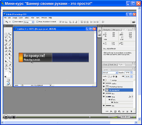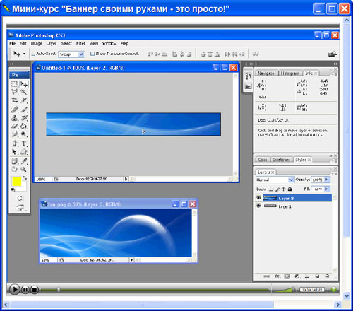 Мини-курс «Баннер своими руками – это просто!» научит Вас создавать достаточно простые, но в то же время эффективные баннеры. В течение 5 видеоуроков Вы познакомитесь с работой программы Adobe Photoshop, а также научитесь создавать статичные и анимированные баннеры в форматах gif и jpg.