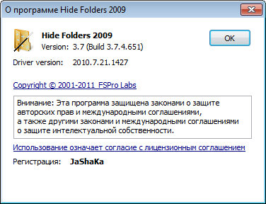 Скачать программу Hide Folders 2009 3.7 Build 3.7.4.651 (4,38 МБ):