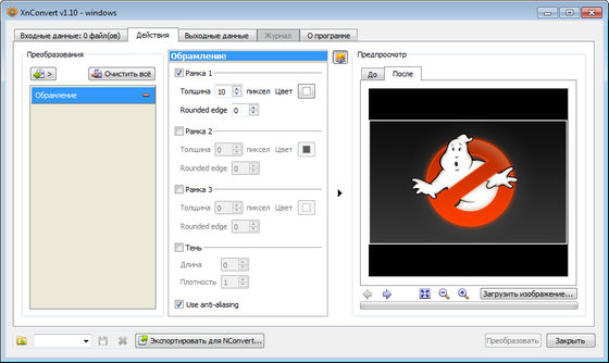 - Интеграция командной строки через NConvert