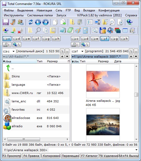 Скачать программу Total Commander 7.56a Vi7Pack 1.82 (8,46 МБ):