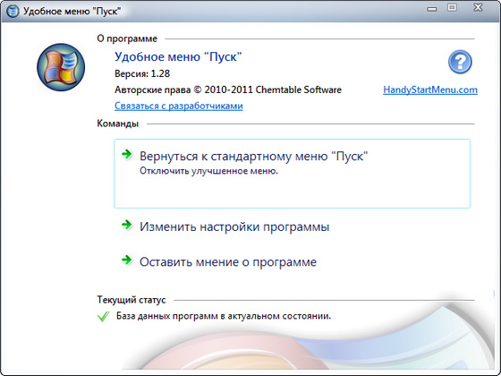 Скачать программу Handy Start Menu 1.28 (8,24 МБ):