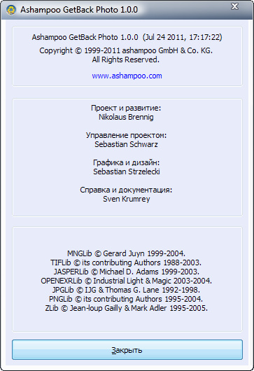 Скачать программу Ashampoo GetBack Photo 1.0.0 (7,68 МБ):