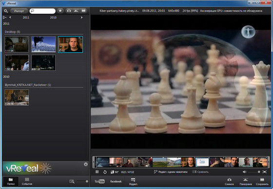 vReveal - программа предназначена для улучшения качества непрофессионального видео, снятого на мобильных телефонах, цифровых камерах и других карманных устройствах. vReveal использует инструменты для стабилизации, повышения яркости и четкости видео. Также программа повышает детализацию видео низкого разрешения и устраняет шумы.