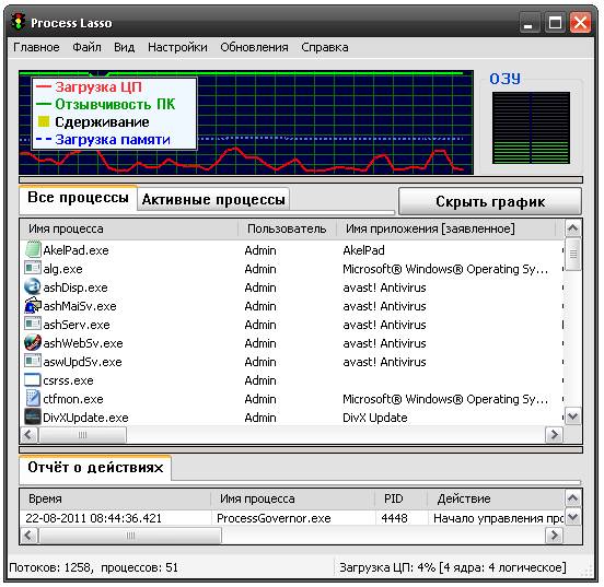 Windows, по умолчанию, позволяет программам полностью загружать центральный процессор, что ведет к зависанию системы и, соответственно, к неудобству работы. Технология ProBalance (Process Balance) программы Process Lasso аккуратно перераспределяет приоритеты запущенных программ, так что процессы, которые ранее загружали весь центральный процессор, больше не будут влиять на отклик системы.