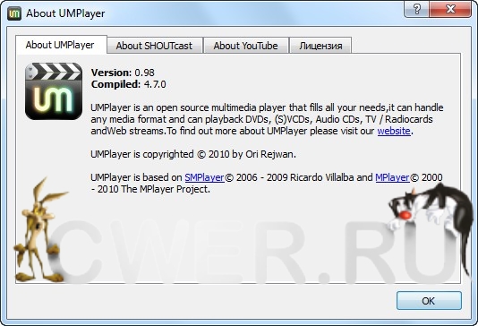Скачать программу UMPlayer 0.98 (13,09 МБ):