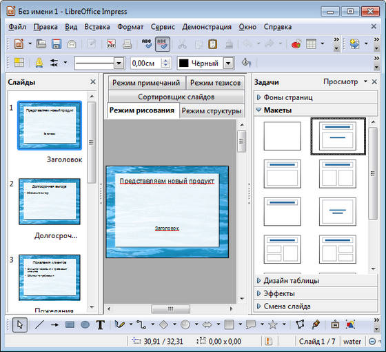 LibreOffice - новое имя пакета офисных приложений OpenOffice.org. Разработчики пакета программ OpenOffice объявили о создании независимой организации The Document Foundation, в рамках которой они продолжат разрабатывать свои приложения, но уже под названием LibreOffice. Программы OpenOffice.org - это бесплатный набор программ, сходный по функционалу с пакетом Microsoft Office: Writer – текстовый процессор; Calc – электронные таблицы; Impress - создание и просмотр мультимедийных презентаций; Draw - редактор векторной графики; Math – редактор математических формул. Одно из крайне положительных качеств - возможность работы всех этих приложений с соответствующими документами форматов MS Office.