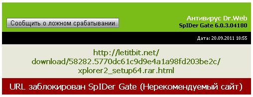 При переходе на страницу скачивания TURBOBIT.net и LetItBit.net, Dr.Web Security Space Pro 6 ругается, и говорит "URL заблокирован SpIDer Gate (Нерекомендуемый сайт".