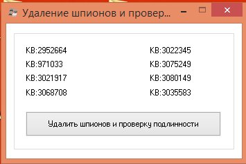 - Не были интегрированы следующие обновления телеметрии и обновления до Windows 10 (обновления скрыты и более загружаться не будут):