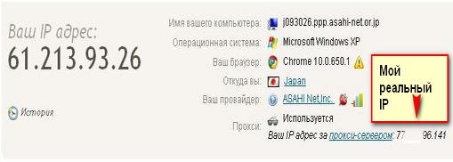 Скрываю IP адрес,проверяю: захожу на сайт 2ip.ru