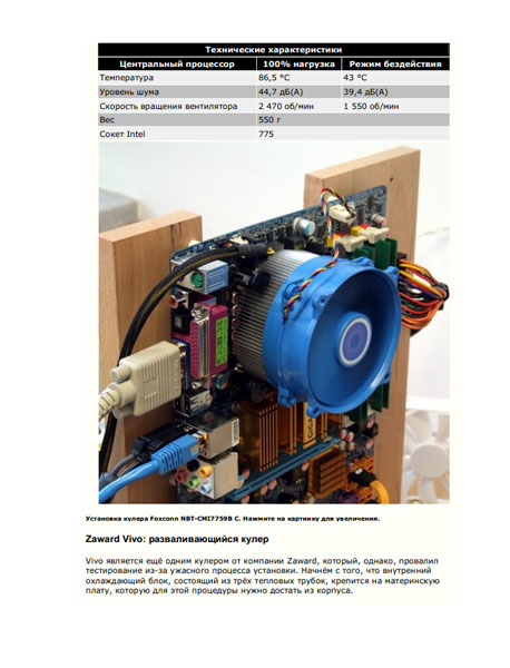 Иллюстрированные статьи, сравнительные тесты и анализ производительности, помощь в выборе по многим критериям, все это можно найти тут. Большая подборка всевозможных моделей кулеров от разных производителей (в обзоре представлены более 50 различных моделей), советы по выбору той или иной категории для разных процессоров, от одноядерных до 4-х ядерных.