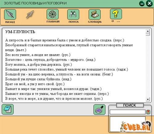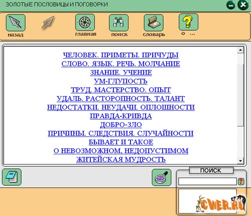 Скачать интерактивную энциклопедию "Золотые пословицы и поговорки" (13,6 МБ):