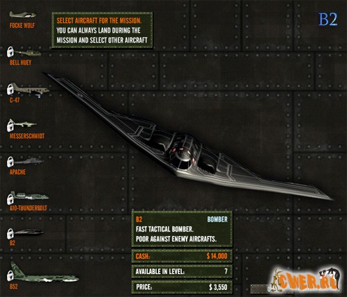 Для тех, кто на броне: управляете самолётом/вертолётом, уничтожаете технику и объекты противника, зарабатываете деньги. В процессе покупаете новые летательные аппараты и модернизируете вооружение.