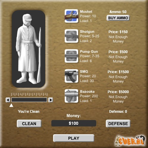 Оригинальная флешка! Вы - памятник. Отстреливайте назойливых птиц, стремящихся изгадить всех и вся. В процессе покупайте патроны и новое оружие(вплоть до базуки).