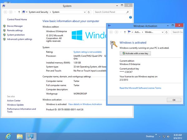 О сколько много всего написали, я что то нарыл что китайцы активировали ее KMS активатором, так что могу вас обрадовать что скоро появится таблетка от жадности для этой системы, но правда активация как всегда на 180 дней, но я думаю страшного такого ничего нет, ним же можно пользоваться и до без конечности, если не упустить время чтоб систему не заблокировало, ну а обладателям оригинальной 7-ки повезло само больше они могут обновиться и активировать новую ОС всего за каких то 15ЕВРО. Не очень то и большая сумма, но все же много народа откажется из-за того что там METRO и им не нравится нововведение в такой системе, и очень много программ отключен авто запуск программ, и это сделано для быстрого(холодного) старта самой системы, а авто запуск программ мешает это делать, винда практически сама убирает авто запуск программ и предупреждает об этом что такое и такое приложение мешает быстрому старту винды отключите его, такие программы как snagit задерживают очень сильно запуск 8-ки и ряд других от Adobe и Xerox не любит она эти программы и сервера. У 8-ке нет AERO что и позволяет такому быстрому старту, система использует нововведение EFI(UEFI). И мелкомягкие хотят принять этот стандарт в будущем и система уже не будет NTFS а совсем другая и 128 разрядная что дает возможность более быстому и качественному обслуживанию, компы куплены до 2011 года скорее всего будут не пригодны к таким нововведениям и BIOS уже тоже не будет, но все это планируется сделать в WINDOWS 9.