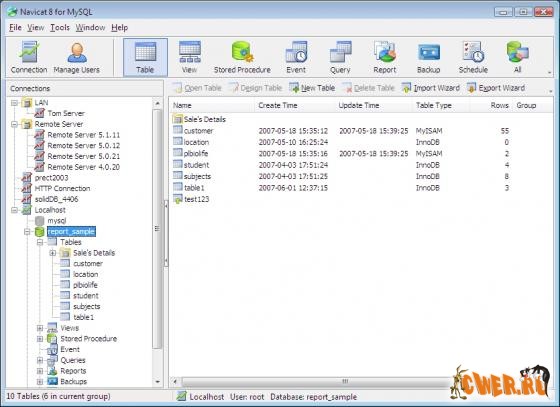 Navicat for MySQL – это графическая утилита для управления и работы с базами данных MySQL, имеющая наглядный интерфейс. Кроме обычных функций для администрирования баз данных, Navicat также предлагает функции импорта/экспорта, создания резервных копий и пересылки данных.