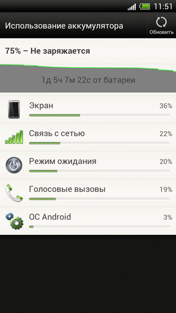 Если не играть, вообще 25% за сутки уходит. Экран, звонки и интернет. Ну, и ночь в режиме ожидания. И это на четырехъядерной третьей Тегре!