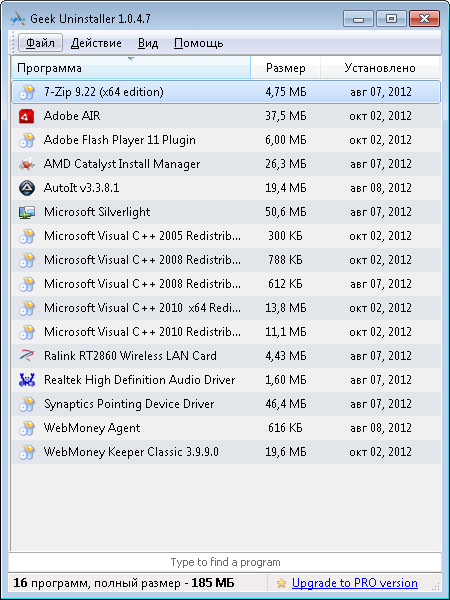 вот мой список программ: