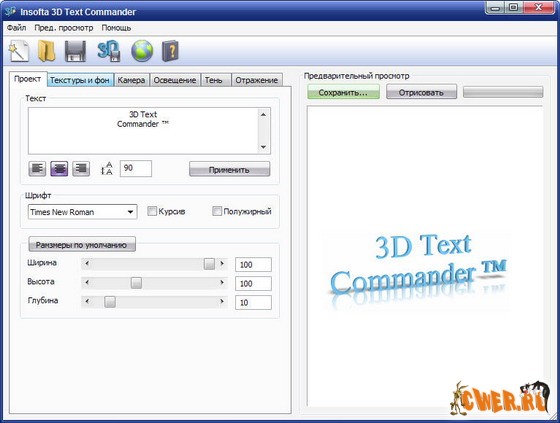 Скачать Insofta 3d Text Commander 2.0 (2.62 МБ):