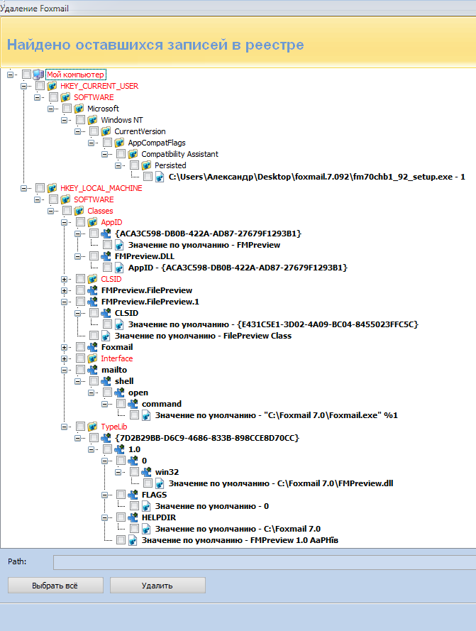 Примеры в студию. У меня почему-то ни один анинсталлер ни на одной виртуалке, куда я ставил Foxmail, не выдал ни одного хвоста, кроме временной папки Foxmail_temp в папке пользователя.