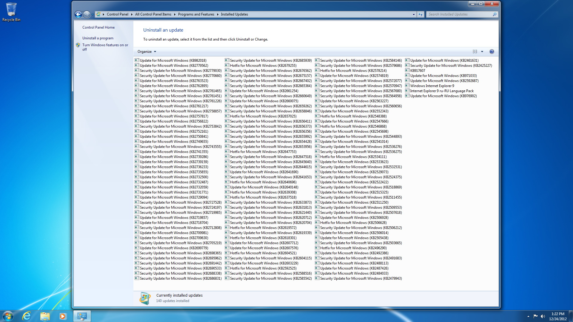 • Интегрированы официальные обновления от Microsoft (кроме касающихся Windows Defeneder и .Net Framework) по 25.12.2012. Несколько обновлений не подлежат интеграции в дистрибутив.