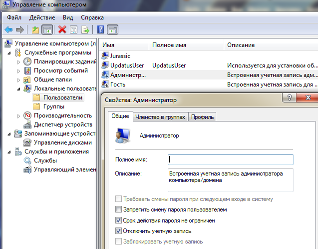 • Контроль учетных записей (UAC) выключен