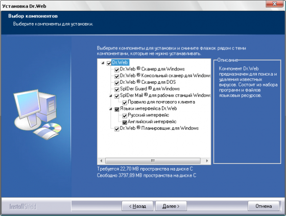 Данная программа представляет собой мощную комбинацию антивирусного сканера Doctor Web и резидентного сторожа SpIDer Guard, глубоко интегрированного в операционную систему Вашего компьютера. Один из самых совершенных в мире эвристических анализаторов Doctor Web в сочетании с ежедневно обновляющимися вирусными базами представляют собой надежную защиту, непреодолимую для любого вируса, "троянского коня", почтового червя и иных видов вредоносного программного кода.
