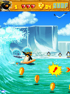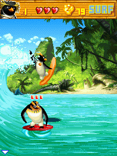 Играй за Коди в чумовом путешествии по скоростному миру соревнований пингвинов-серфингистов. Размеры экранов: 128х128, 132х176, 176х204, 176х208, 240х320.