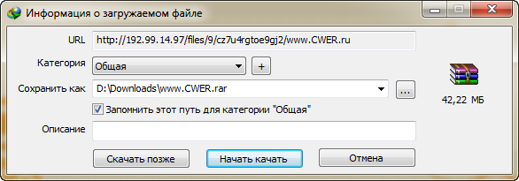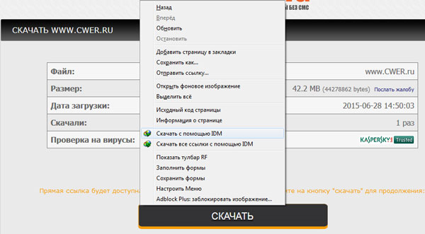 2а. Через несколько секунд появится кнопка "Скачать". Если у вас современный браузер и установлен Internet Download Manager, вам достаточно нажать на ссылку, и благодаря расширенной интеграции менеджера загрузок в браузер появится окно скачивания нужного файла.