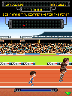 Игра для мобильных телефонов. Набор мини игр в духе Олимпиады, бросающих вызов вашим способностям и терпению. Два режима игры: тренировка и Олимпиада. Все виды соревнований сопровождаются полезным описанием. Одолейте 10 сильнейших спортсменов мира и завоюйте медали, войдя в тройку лучших в каждом состязании. Размеры экранов: 128х128, 128х160, 176х204, 176х208, 240х320.