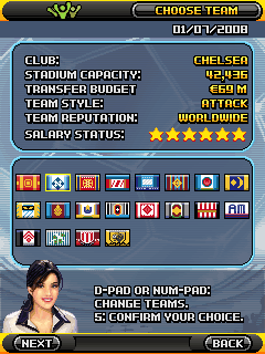 Выбирай свой любимый клуб из 8 различных лиг и более 200 возможных команд. Размеры экранов: 128х128, 128х160, 176х208, 176х220, 208х208, 240х320, 352х416.