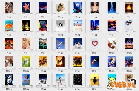 Укрась дисплей своего телефона! В архиве 200 картинок в формате jpg; разрешение - 320х240.