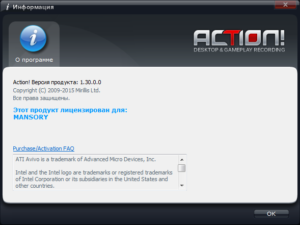 Скачать программу Mirillis Action! 1.30.0 (20,92 МБ):