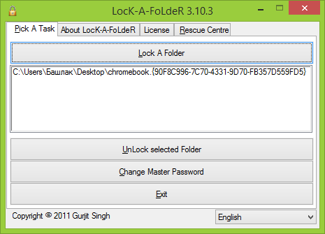 LocK-A-FoLdeR – идеальное решение для самых не требовательных пользователей, которое позволит вам скрыть любую папку на своем компьютере. Программа использует только один мастер-пароль и имеет очень простой пользовательский интерфейс. Более того, программа не предлагает вообще никаких настроек.