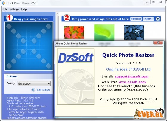 Скачать DzSoft Quick Photo Resizer 2.5.1.5 (3,59 МБ):