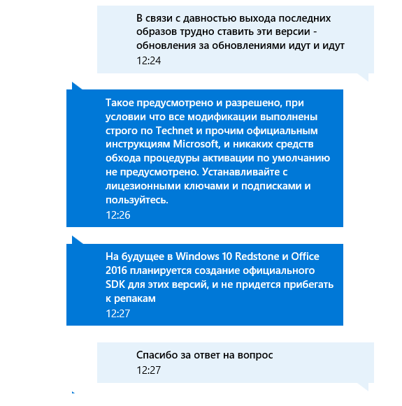 Как видите, судя по переписке, что предыдущие версии, в отличие от Windows 10+ и Office 2013+, имеют недостаточный SDK. Вот собственно об этом и говорили со специалистом, потому что в несколько ребутов устанавливать апдейты неудобно.