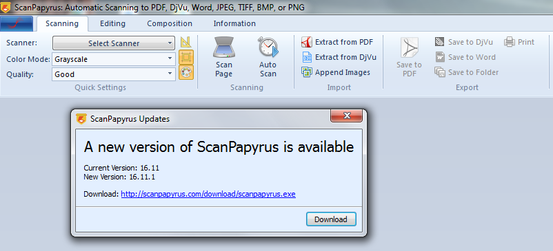 Скачать программу ScanPapyrus 16.11 (10,6 МБ):