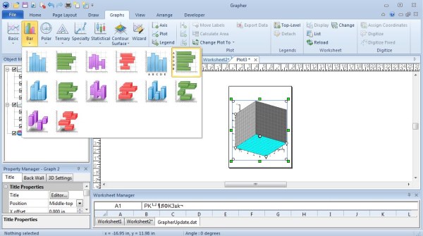 Grapher – эффективный и простой в использовании графический пакет, позволяющий быстро создавать высококачественные графики. Более 60 видов двухмерных и трёхмерных графиков c возможностью настраивать любую часть графика или создавать свои собственные графики, наилучшим образом описывающие ваши данные.