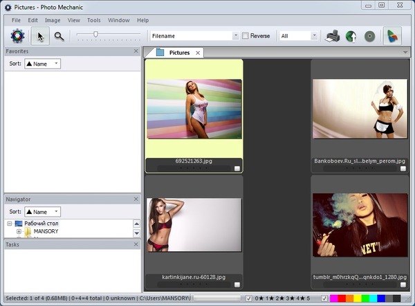 Photo Mechanic - фотобраузер и фоторедактор, оперативно обрабатывающий тысячи снимков в одиночном и пакетном режимах, отбирает из них самые удачные, обрезает, добавляет информацию к фото, рейтинг, корреспондируется с цифровыми камерами, интегрируется со многими редакторами в т.ч. Adobe Photoshop, позволяет легко экспортировать данные. Программа предназначена для профессиональных фотографов и фотокорреспондентов обрабатывающих огромные массивы цифровой информации и ограниченных по времени.