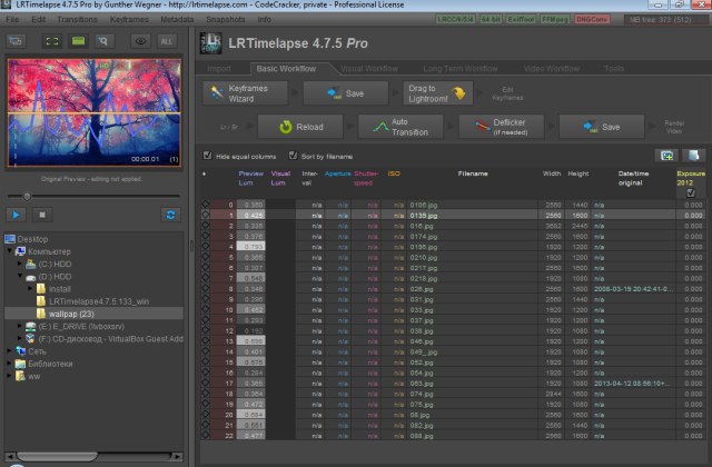 LRTimelapse используется самыми известными производителями и многими любителями для time lapse. Главная её особенность - это автоматическая установка параметров (экспозиция, контраст и т.д.) для каждого файла по нескольким ключевым кадрам. Таймлапс съёмка это техника съемки каждые Х секунд, после чего полученные ваши снимки обрабатываются для получения видеоролика. Полученная последовательность снимков затем «собирается» в единый видеоряд.