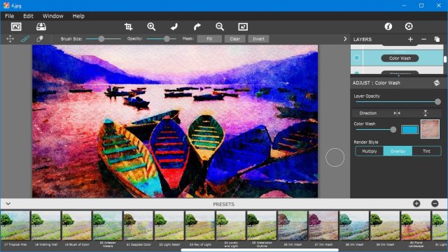 Watercolor Studio - графический редактор для создания естественных, полупрозрачных акварельных эффектов. Программа моментально создает из вашего изображения акварельную картину, а затем позволяет настроить и применить эффекты при помощи набора слайдеров, кистей, слоев, цветовых шаблонов и художественной отделки. И в результате вы получите качественные акварельные краски, наполненные прозрачной и естественной красотой.