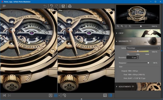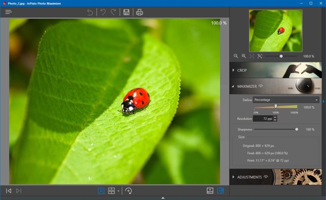 Photo Maximizer - редактор для увеличения фотоснимков практически без потери исходного качества. Программа также позволит увеличить конкретные детали изображения. А функция предварительного просмотра поможет подобрать подходящие настройки и масштабировать выбранные участки снимка.