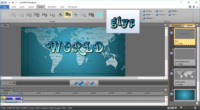 По сравнению с другими решениями Heroglyph значительно упрощает ваш рабочий процесс путем автоматизации. Ручная настройка также возможна на случай, когда ваш специальный проект будет требовать какой-либо финализации параметров. Heroglyph может использоваться как самостоятельное приложение или интегрироватся как плагин в программы для нелинейного монтажа от Adobe, AVID, Corel, Grass Valley, Magix и Sony. Создавайте профессиональные титры, субтитры, туристические маршруты и рукописные текстовые анимации только при помощи одного удивительного инструмента.