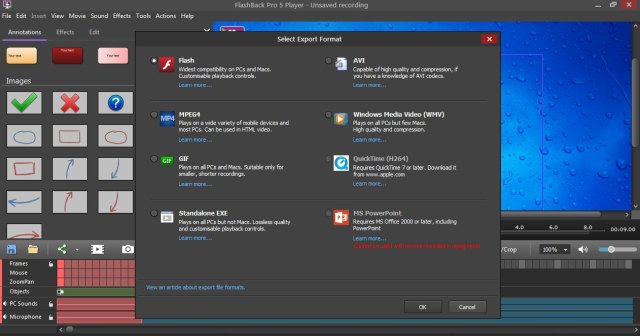BB FlashBack - программа для создания видеоуроков, различных мануалов, презентаций и т.д, поможет записать все, что происходит на рабочем столе в файл Flash, AVI, WMV, EXE или PowerPoint, добавив свои комментарии или музыку. А встроенный редактор позволит отредактировать ваш "фильм" после записи и просмотреть в плеере. Полученное видео можно снабжать текстами, картинками и звуками, а также отдельно записать комментарий, а потом добавить его к ролику.