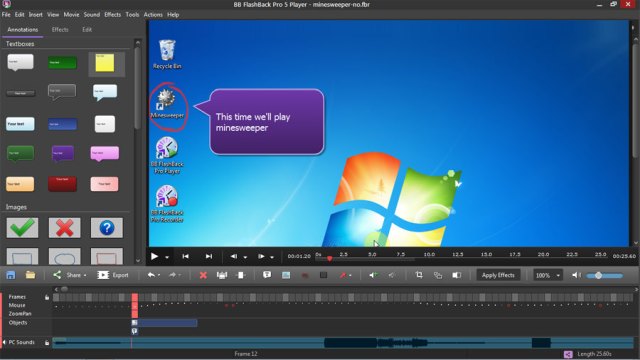 Сделайте так, чтобы ваши зрители полностью вас понимали. Добавьте текстовые блоки, подсветку, изображения и интерактивные кнопки. Настройте их внешний вид и добавьте эффекты появления/исчезания. Приложение для записи экрана BB FlashBack помогает лучше передать все ваши идеи и мысли. (только редакции Standard и Pro) - Звуковое редактирование профессионального уровня