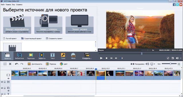 AVS Video Editor - полнофункциональный видеоредактор для создания профессионального видео и процессинга, позволяет произвести захват видео с видеокамер и тюнеров, использовать более 300 разнообразных эффектов, создавать DVD, редактировать и преобразовывать видео в различные форматы, а также для iPod, PSP, телефонов и других портативных устройств. Алгоритм автоматического определения сцены позволяет Вам быстро перемещаться, редактировать файлы и предотвращает ошибки при нарезке и комбинировании файлов.
