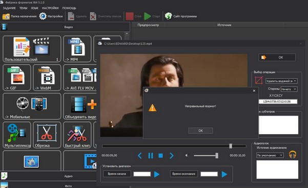 Что-то с 5.1.0 не то. При выборе любого задания и любого файла теперь пишет:"Неправильный формат." Переустановка и перезагрузка не помогли.