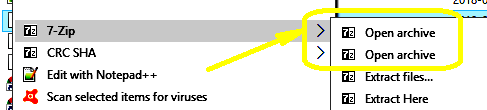 После некоторых чистильщиков перестают работать две верхние позиции в Context Menu у 7-zip - обведены на картинке: