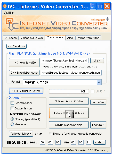 Internet Video Converter - бесплатная утилита, использующая графический интерфейс для взаимодействия с популярными кодерами Mencoder, FFmpeg и FLVtool2 для кодирования флэш-видео в большинство популярных видео-форматов (Flash FLV, SWF, VCD, SVCD, DVD, DV, MPED, DivX, XviD, AVI, Quicktime, WMV, H.264, iPod, PSP, 3GP и т.д.). Поддерживается конвертация файлов из одного формата в другой, имеется возможность сохранения видео файлов с большинства файловых обменников (Youtube, DailyMotion, Google Video и др), при желании можно сохранять только звуковые дорожки.