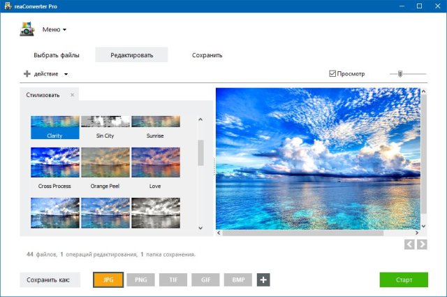 ReaConverter – отличный инструмент для тех, кто работает с большим количеством изображений, который поддерживает огромное количество форматов. Благодаря ReaConverter вы сможете осуществлять групповую обработку и редактирование изображений (ретушь, цветокоррекция, ориентация, защита фотографий и тд.).