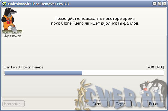 Clone Remover Pro - программа для поиска дубликатов файлов. Поможет найти одинаковые файлы, находящиеся в разных «местах» (жестких дисках, CD, DVD и т.д.) вашего компьютера, даже если названия файлов не совпадают. Поиск дубликатов файлов в этой программе осуществляется двумя нажатиями кнопок, т.к. программа очень проста в использовании и не требует особых навыков работы с компьютером. Если, что-то будет не понятно, вы сможете воспользоваться системой помощи, встроенной в программу. Даже ради интереса, знать сколько одинаковых файлов скопилось у вас на носителях информации - очень полезно.